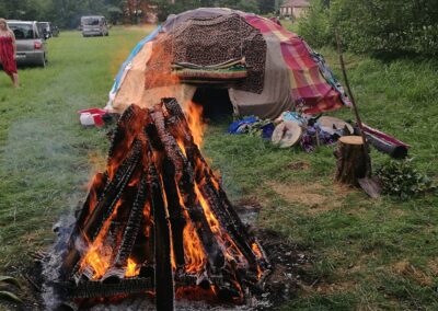 C’est une cérémonie puissante et ouverte à tou.te.s qui vous est proposée : les pierres chauffées au feu sont rentrées dans la hutte, et l’eau versée produit une vapeur qui purifie le corps en douceur. Les chants participatifs libèrent l’esprit, permettent à la conscience de découvrir de nouveaux horizons.